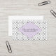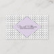 Simple and sophisticatedly chic Modern Polka Dots Business Card with a light lavender triangle shaped overlay and a delightful black and white patterned polka dot background. This classic and minimalist geometric profile card is easy to customize with your business details. This versatile pattern design is perfect for a variety of business types. Find more personalization options by clicking Customize.