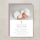 Personalized Purple Modern Religious Cross Photo Baptism Invitation.