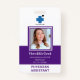 This modern purple security ID badge features your name, role, title and photo. Designed for hospital and medical centre employees. On the mockup, design is purple but you can easily change the colours.