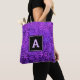 Purple monogram leaf pattern bold modern custom tote bag