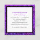 A purple, pink and blue ombre leaf foliage damask pattern on a rich, deep purple textured background adorns this stunning, modern, custom square business card. Personalize with your initial, full name, and business on the front. Fill in the back side with your phone numbers, address, email, website, and social media accounts. Makes a chic, smart, and stylish statement wherever you go.