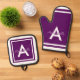 Purple Monogram Personalized Oven Mitt & Pot Holder Set