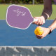 Purple Monogrammed Pickleball Paddle is minimalist designed with a customizable light lavender purple background. Name is in white trendy hand lettered script.. Click personalize template option and enter name.