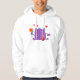 This design may be of a purple monster but it is a very cute purple monster. The monster is holding a flower in one hand and there is 3 love hearts above him. The monster also has a funny grin on it’s face. This purple monster design looks great on this mens hoodie. Perfect for yourself or as a gift