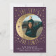 Célébrez l'exploit de votre grand avec cette élégante faire-part de graduation photo avec une lune et des étoiles en or avec le texte qui dit "Le ciel est la limite" contre un arrière - plan violet orchidée. REMARQUE : L'or présenté dans ce design n'est PAS un vrai papier peint. L'image de l'espace réservé a été fournie par Unsplash et n'est PAS à vendre remplacez-la par vos photos.