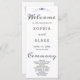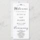 On the back of the program, you'll find a list of the esteemed wedding party presented in classic black and grey. The use of a simple block font ensures a clean and sophisticated appearance, allowing the celestial design to take centre stage. To add a hint of romance, the words "Welcome," "Ceremony," and "Wedding Party" are delicately rendered in a pretty decorative script font, imparting a touch of whimsy and sophistication.
