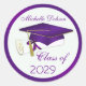 Class of any year, Purple mortar cap and diploma Graduation round Sticker. Easy to customize - just put your name and graduation year.