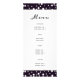 Purple mountains and conifer trees ceremony and party wedding menu card . An elegant wedding design featuring a mountain range through conifers and your names in handwritten style. The back includes dark and white borders with white polka dots on top and at the bottom of the card.