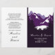 Purple mountains and conifers folded wedding program. A trendy yet elegant wedding design featuring a mountain range through conifers and your names in handwritten style. The inside includes dark purple and white borders with polka dots and white frames with your text.