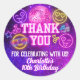 Purple Neon Glow Retro Cute Smile Faces Thank You Classic Round Sticker