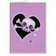 Decorated like a neon sign, this purple skull is set on a black heart that is outlined in neon purple. The skull has smaller hearts with a colourful pattern that are the eyeballs and the large heart is accented with a pull chain.