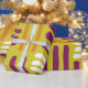 Purple, orange and green wrapping paper for birthdays.