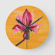 From original watercolour painting by Sacha Grossel of a purple watercolour flower design on a bright orange pop art vividly coloured painted art background. This vibrant design was inspired by tropical floral climates and is a botanical meets pop art style.