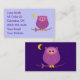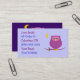 These cute purple owl business cards feature an illustration with a beautiful cartoon owl on a branch under a crescent moon! These business cards are a creative way to make an impression and are great for using as personal contact cards! Fill in your own name, address, email, phone number and website or any other information that you require in the easy to fill in customizable template!