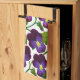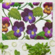Original fine art design of a purple pansies and violas by artist Carolyn McFann of Two Purring Cats Studio printed on a quality American Mojo kitchen towel for floral art fans.
