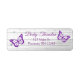 Papillon mauve et blanc avec bois rustique et police mignonne Étiquette d'adresse de retour.