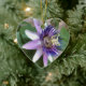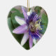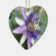 An exotic passion fruit flower grows on a vine for a short time. This beautiful purple passion flower has an unusual design that almost looks like its from another planet with its light purplish white petals in a star shape and deep purple ray of inner petal contrasting the yellow stamen that looks like antennas on a satellite dish.