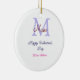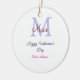 Purple pastel happy Valentine's day pink monogram Ceramic Ornament