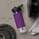 Purple pattern wildflowers red poppy water bottle. Personalized Drinkware with name.