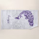 Enjoy your day at the beach or poolside with a Purple Peacock Personalized Beach Towel. Towel design features a vibrant purple peacock, a soft white leaf vine against a light grey grunge background with an area to personalize with your name. Additional gift items available with this design as well as a variety of colours.