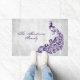 Add an elegant touch to your doorstep with a Purple Peacock Personalized Door Mat. Door mat design features a vibrant purple peacock, a soft white leaf vine against a light grey grunge background with an area to personalize with your family's name. Additional gift items available with this design as well as a variety of colours.