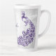 Enjoy your latte or morning coffee with a Purple Peacock Personalized Latte Mug. Mug design features a vibrant purple peacock, a soft white leaf vine against a light grey grunge background with an area to personalize with your name. Additional gift items available with this design as well as a variety of colours.