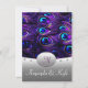 Purple peacock wedding invitations are schemed in various purple shades, silver, aqua, blues and a hint of gold. The front of each invitation features printed vibrant feathers at the top, with printed silver and diamond accents at the bottom. The front features four tiny diamonds that border the monogram. You can change the monogram letter, font, sizing and colouring by clicking the orange customize button below the invite demo or by using the personalize feature to the right of it. The back is silver with printed silver swirl jewels and a solitaire diamond that's centred near the top. The text on the back and wording can also be changed to what ever you desire by using the personalize or orange customize button below the demo. You can use your mouse to zoom in to see the excellent detail to the printed feathers and diamonds. Just hoover your mouse over the card demo at the top. If you love this design, scroll below to find matching other invitation sizes, RSVP cards, save the dates, envelopes, envelope seals and more.