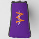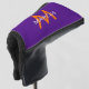 Personalized Monogram on a Purple and Orange Blade Style Putter Club Cover in a modern sans-serif font.