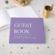 Simple and modern guest book for a wedding or any party or event in a purple and white colour block with a serif font and a minimalist style. Personalize this keepsake with any text, names, date, etc.