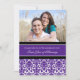 Custom photo 1st wedding anniversary party invitation card in elegant dark purple, black and white classic floral damask pattern, delicate and modern. Customizable with your party details and your own photo.