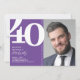 Create lasting memories at your 40th birthday bash with these trendy purple birthday party invitations! Featuring a large bold serif font showcasing the number '40', a photo of the birthday boy / girl, and a modern template that is easy to personalize, these invitations will capture the spirit of the occasion. With its unique design, these one-of-a-kind invitations are sure to get your friends and family excited for an unforgettable celebration.