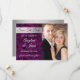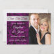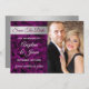Simple, elegant, modern script, faux silver and purple wedding save the date invitation, with photo.