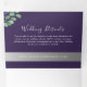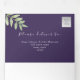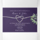 Elegant, modern calligraphy script, watercolor greenery purple wedding invitation with simple faux silver rope heart and custom photo of the couple.