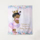 Purple and pink baby shower backdrop with cute African American baby girl wearing a cute pink and purple tutu and mask on a pretty pink and purple floral background. You can move the baby as needed, and you can add and remove text as needed.