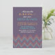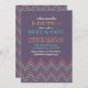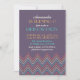 Carte d'invitation à la fête d'anniversaire mignonne et sucrée avec un motif en chevron coloré ou un motif en zigzag. Arrière - plan violet avec libellé jaune, blanc et bleu. Design chic et amusant. Parfait pour la fête des filles. Customisez le libellé pour d'autres occasions comme baby shower, douche nuptiale, mariage, doux 16, graduation et plus.