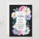 Purple Pink Floral on Black Wedding Invitation