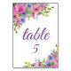 Add a touch of elegance to your reception with this double-sided floral table number card, beautifully printed on both the front and back for easy visibility from any angle. Featuring vibrant watercolor blooms in pink, purple, and blue with lush greenery, this design brings charm and sophistication to your wedding, bridal shower, or special event. The bold script table number stands out against the clean white background, making it simple for guests to find their seats while complementing your décor. Perfect for spring, summer, or garden-inspired celebrations.