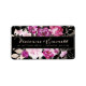 Your names are written in an elegant script font. Your address follows in a traditional and classic font. The text is surrounded by two lush floral borders consisting of blush pink, deep purple and magenta flowers. They are nestled in elegant leaves. Some are solid and others open to give it a modern botanical vibe. The deep black background frames the elements and makes them really pop. This return address label coordinates with the Purple Pink Floral Collection. It contains the DIY templates you can use to create your wedding stationery and to personalize your ceremony and reception. You should see a link to it on this page. If you don't see the link or need help with a template, please contact me.