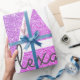 Purple and Pink Ombre Faux Glitter and Sparkle Elegant Gift Wrapping Paper. This gift wrapping paper can be customized to include your initial and first name for a gift package for a Girl's Baby Shower, Bridal Shower, Bachelorette Party or Girl's Birthday Party.