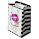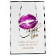 Purple Pink Glitter Lips & White Stripes Medium Gift Bag