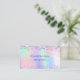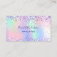 A trendy holographic background in pink, purple, mint green. Decorated with purple confetti. Personalize and add your name, title, photo, phone number, mail, website address, qr code to your website. Purple letters.