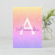 Purple and Pink Ombre Rainbow Pastel Sparkle Glitter Girl's Religious Baptism Monogram Name and Initial Party Invitation. Party details can be found on the inside of the card. Please contact the designer for matching items.