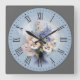 Purple-Pink-White Flowers Roman Numeral Square Wall Clock