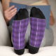 An attractive purple plaid that's formal enough for special occasions but fun enough to be a talking point. The checks have a printed knit effect and can be accompanied by a short message, name or initials. Simply add your text via the placeholder and it will appear on the top black cuff on both socks.