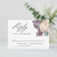A beautiful boho tropical watercolor floral wedding RSVP card design with a sumptuous colour palette in purple, plum, beige (off-white) and green. The luxurious colours and textures of this invitation make it a perfect choice for summer, fall or winter weddings. The beautiful flowers in this elegant design include exotic proteas and tropical leaves. Personalize the text template with your required response date.