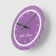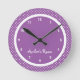 Purple Polka Dot Girl's Bedroom wall clock personalized with their name.