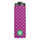 Purple Polka Dot Pattern Green Monogram Thermal Tumbler