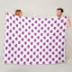 Purple polka hearts on white fleece blanket