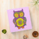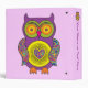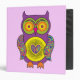 A cute cartoon psychedelic owl in purple, lime green and rainbow colours.