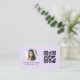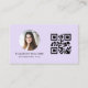Purple QR Code Photo Monogram Minimalist Business Card